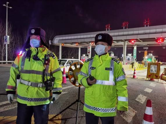 张杨(右)在高速公路卡口值守。(受访者供图)