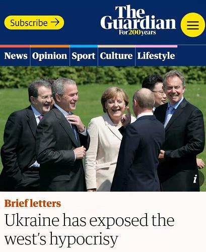 △英国 《卫报》刊文说,乌克兰暴露了西方的伪善。