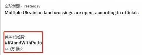 支持俄罗斯、支持普京的词条甚至登上过推特热搜榜的前列。