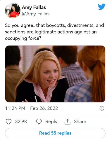 也有网友慨叹,西方国家扮演占领者角色入侵别人的时候,怎么没对自己进行抵制、撤资、制裁!这条搭配了不可思议表情的推文,获得了三万多点赞。