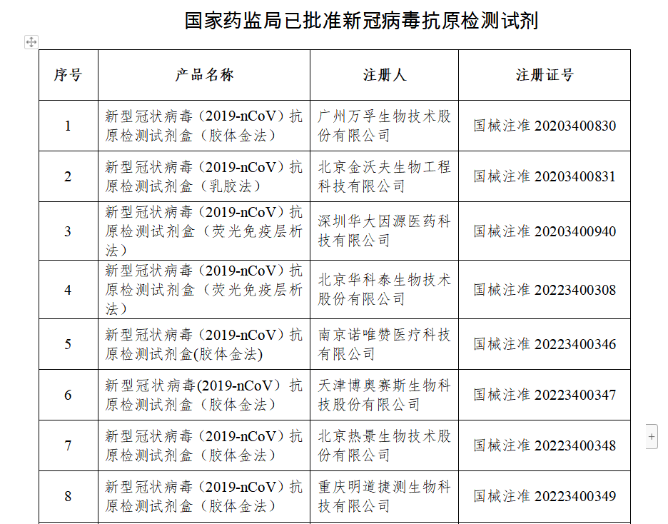 国家药监局已批准19个新冠病毒抗原检测试剂