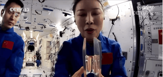 在约45分钟的授课中,航天员生动演示微重力环境下太空“冰雪”实验、液桥演示实验、水油分离实验、太空抛物实验,深入浅出讲解实验现象背后的科学原理,同时展示了部分空间科学设施,介绍了在空间站的工作生活情况。
