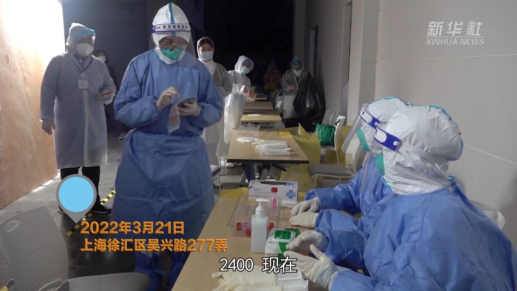 从上海的杨浦区到虹口区,再到徐汇区,新华社记者走进上海的三个居民社区和核酸检测点,用镜头记录下了一线基层社区工作人员、医护工作者和志愿者“战在‘疫’线”的点点滴滴……