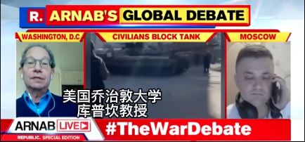在节目中,库普坎批评印度“不能再做‘骑墙派’”,遭到阿纳布回怼“不要教育我们”,并怒斥“美国没有资格假装是民主和人权的捍卫者”。当库普坎说到“你看到西方国家已经团结起来对抗俄罗斯了 ,三分之二的国家都在反对俄罗斯”时,印度主持人阿纳布摇头连说“不是的”,已经忍不住想要插话进去,但没能成功。在库普坎结束发言后,阿纳布首先表示:“我希望你能让我体面地把话说完。”“首先,恕我直言,库普坎教授,你的发言在道德立场上站不住脚!你们美国人没有资格,美国没有资格假装是民主和人权的捍卫者。你们才是暴行的罪魁祸首。”主持人阿纳布大声呵斥。他随即提到当初奥巴马在利比亚内战时伙同盟友搅乱局势,使内战延续了十年,还列举了美国对多个国家发动战争,包括伊拉克、叙利亚、也门、索马里、尼日尔,并用无人机杀害了上千人。“你说到印度,我们是一个大国,我们不是你们的‘卫星国’,所以不要教育我们该做什么。我们会管好自己的。”主持人向库普坎说道。3月21日,该节目就美方发出的“印度站在历史错误一边”言论展开了辩论。库普坎教授再次挑战了印度媒体的神经。在这次的节目里,主持人阿纳布认为在乌克兰问题上,印度的对外政策是独立和中立的。他说一些关键国家面对这一的危机时,保持中立是必要的。库普坎教授在回应中声称,印度在选边站(India is choosing sides)。并质问印方,当乌克兰深陷危机时,印度在哪?印度要决定他们是站在历史的正确一边还是错误一边?印度为何不站出来“谴责”俄罗斯?这时主持人阿纳布先问了一个问题:“美国为什么不对中国说同样的话?” 随后把问题抛给了最左边的一名印度嘉宾。