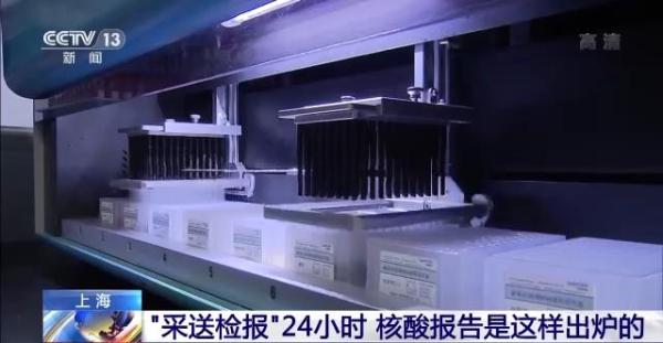 采样管先要逐一进行扫码录入,并插入实验板。2秒一管,6000份管子得扫一个小时。 扫完码的管子被送入实验室,还要经历几个步骤:提取样本加到裂解液中,再放入这个机器进行自动化核酸提取,之后,检测员进行荧光定量反应操作。