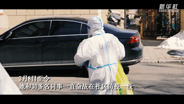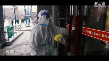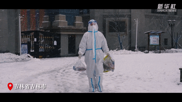 在吉林市,昌邑区兴华街道中兴社区网格员宋冉负责为居家隔离的居民送物资、倒垃圾,一天工作十几个小时是常态,虽然辛苦,但居民每次开门的“谢谢”让她觉得付出再多都值得。
