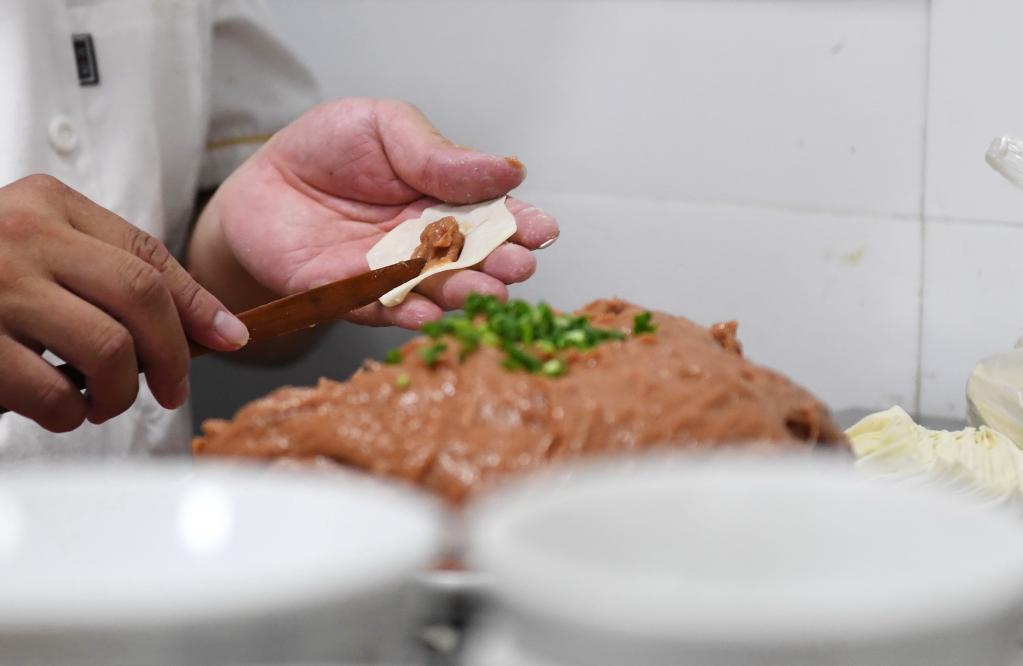 “以前手打三到四斤肉馅,要50多分钟,现在用机器打馅,十分钟就能完成,既提高了效率,也保证了肉馅的新鲜度和韧劲。”王盛滨说。