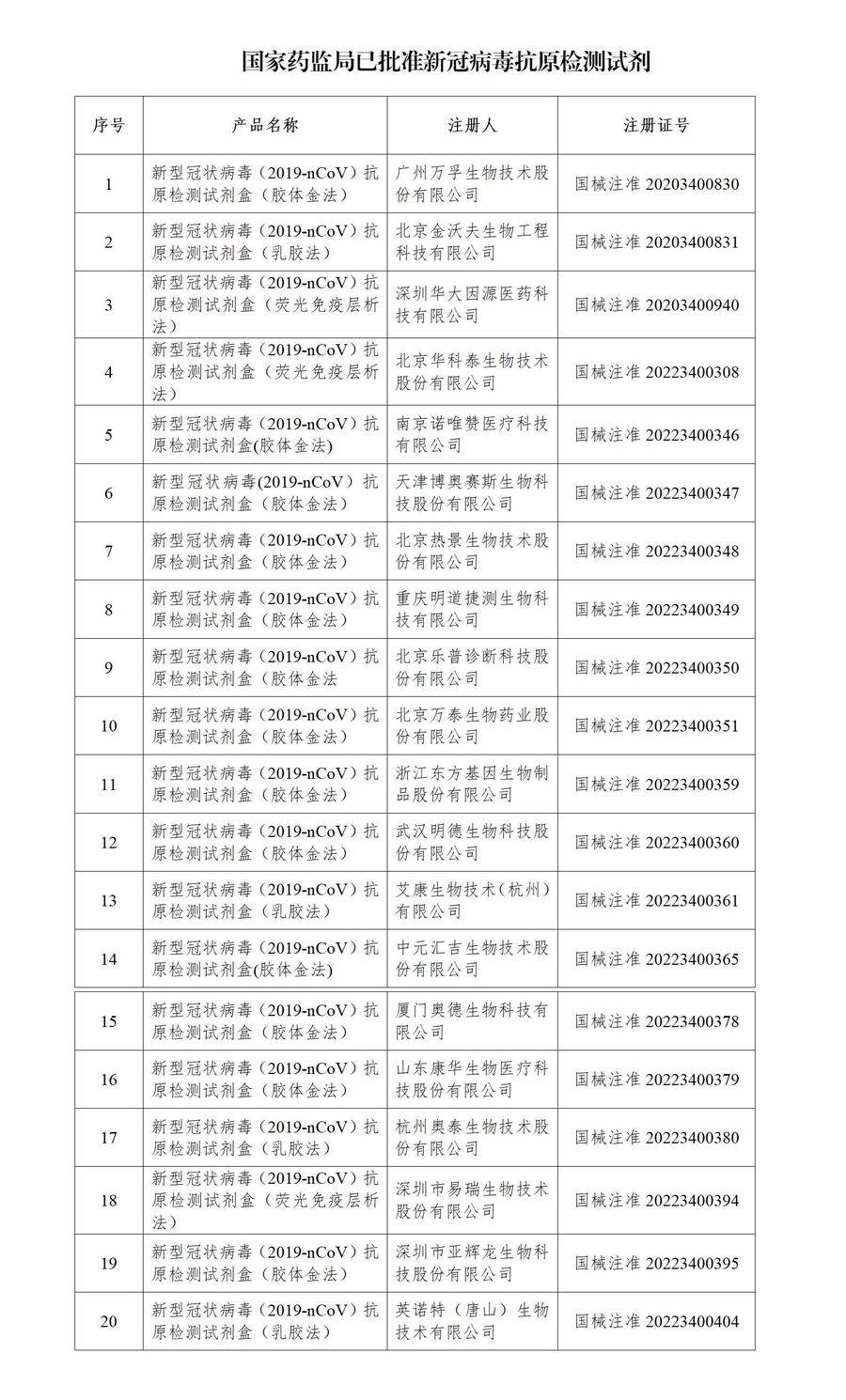 国家药监局已批准20个新冠病毒抗原检测试剂