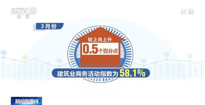 另外,受疫情影响相对较小的行业活动表现良好,较好发挥了托底非制造业增长的作用。其中,3月份,建筑业商务活动指数为58.1%,较上月上升0.5个百分点,连续2个月环比上升。