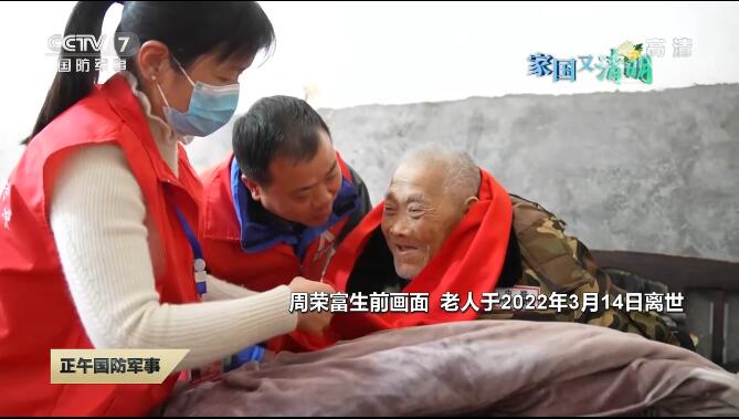 画面上的老人名叫周荣富,是一名中国人民志愿军老战士。老人生前每次看到这张大合影,都会讲起在朝鲜战场上的那段经历。