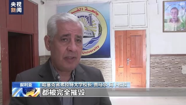 哈塞克省弗拉特大学校长 贾马尔·阿卜杜拉:工程学院的两个大厅和一个会议室,以及学校南北两个行政办公室都被完全摧毁,经济学院与工程学院的主教学楼也有轻微损坏,职业培训中心被彻底炸毁,然后被美国支持的武装人员推平了。这些建筑都是被美国战机轰炸破坏的。
