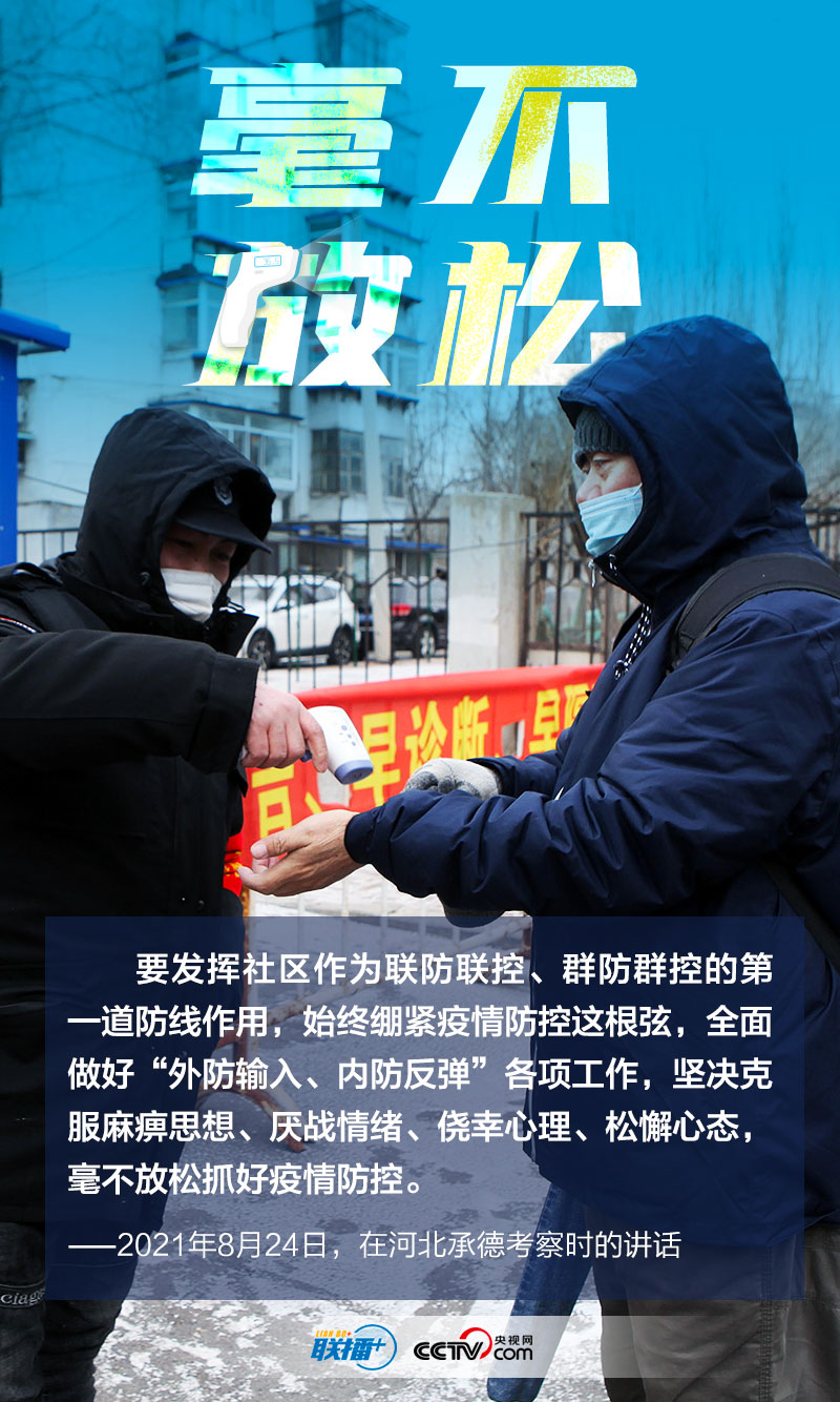 当前,全国新增本土确诊病例和无症状感染者快速增长,部分地区社区传播仍未阻断,疫情仍在高位运行,防控形势严峻复杂。央视网《联播+》特与您一起重温总书记关于疫情防控的部署,让我们共同坚定信心、慎终如始,筑牢抗击新冠肺炎疫情安全防线。