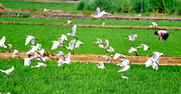 白鹭为群居动物,喜静,对生存环境的选择和要求非常严格,又被称为“环保使者”。目前,成片的稻田绿植丰富、鱼虾鲜美,为它们提供了绝佳栖息地。