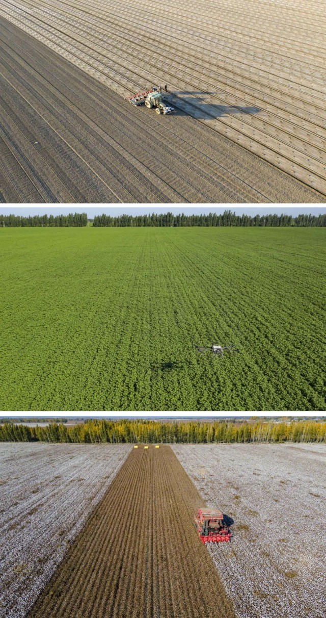 为棉农整地、播种、植保、收获