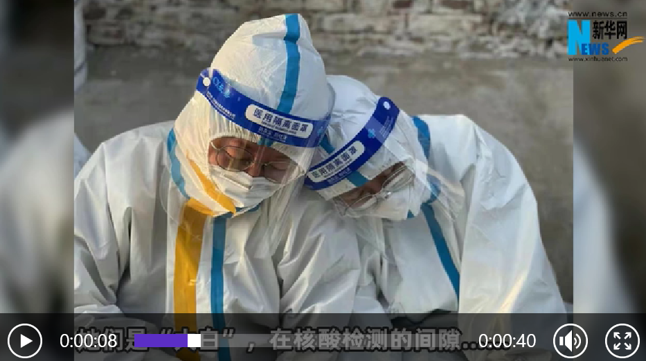 “大白”们披星戴月,奔赴核酸检测现场。在间隙时,她们小憩……
