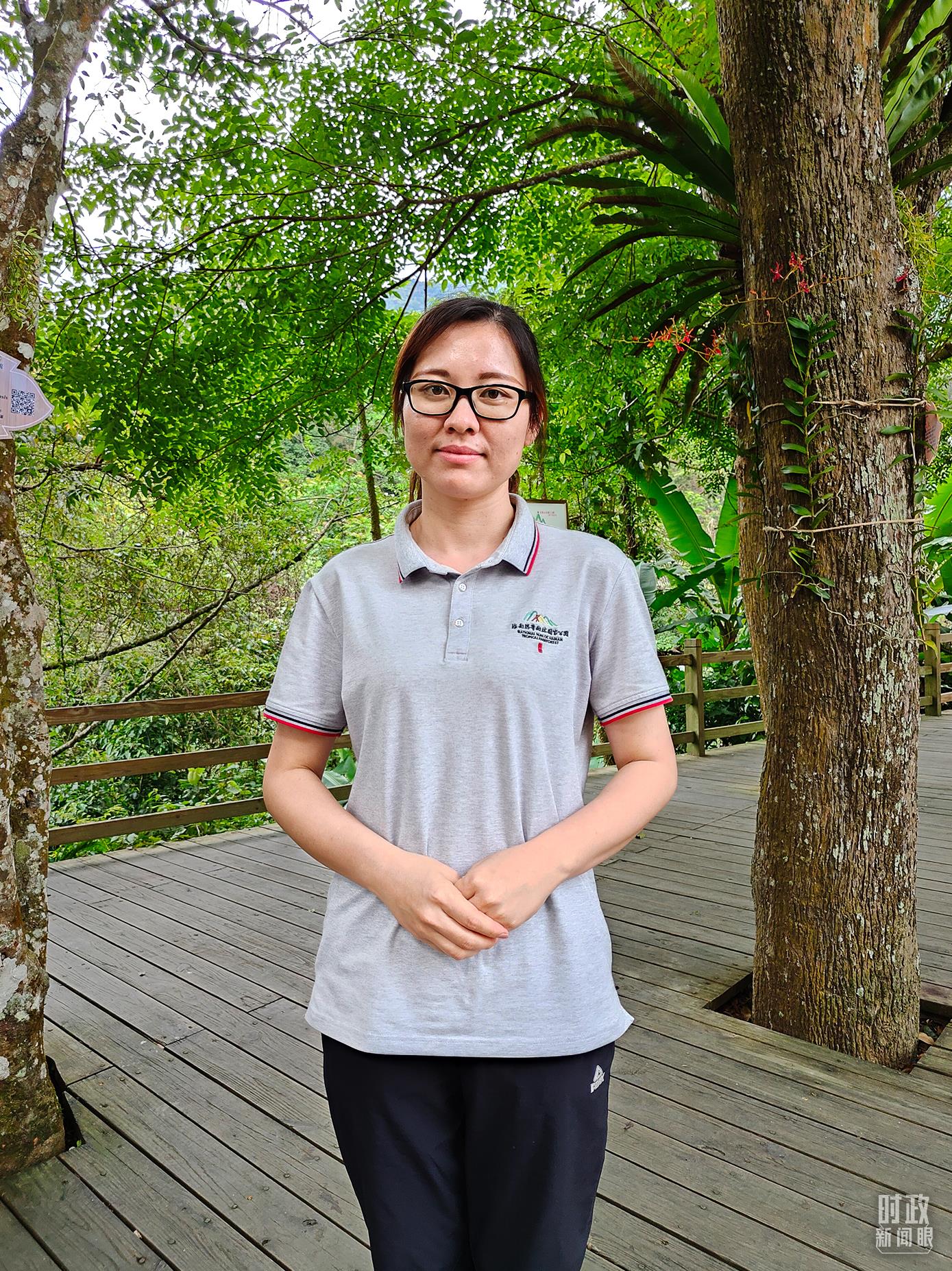 △郑燕,现为海南热带雨林国家公园管理局五指山分局宣教科普科工作人员。(总台央视记者杨立峰拍摄)