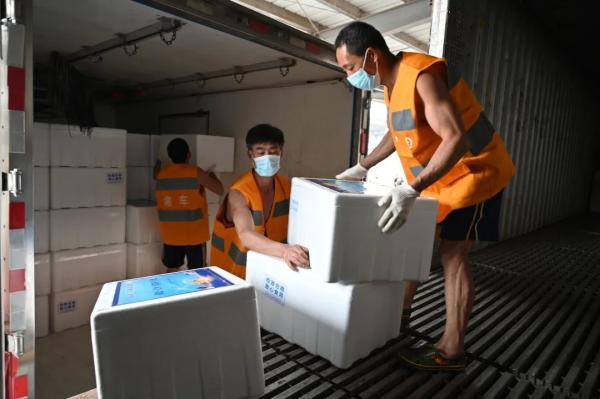 他们专门选取8辆机械冷藏车和2个40英尺冷藏集装箱,实现全程冷链运输,确保物资贮运新鲜品质稳定。