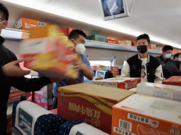 因转运防疫物资,g1918次列车将站停时间临时延长至10分钟。然而,如何快速将1904件防疫物资顺利装运上车,依旧是最大的难题。车站的工作人员、车上的乘务人员,以及车内的热心旅客相互配合,组成5条“人工传送带”,迅速有序完成了240箱方便面、460箱火腿肠、320箱面包、402箱牛奶等1904件防疫物资的装车任务。