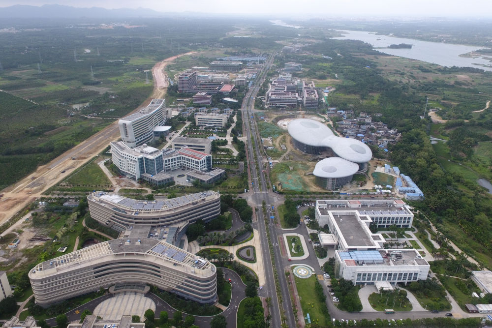 ↑2020年4月3日拍摄的博鳌乐城国际医疗旅游先行区(无人机照片)。