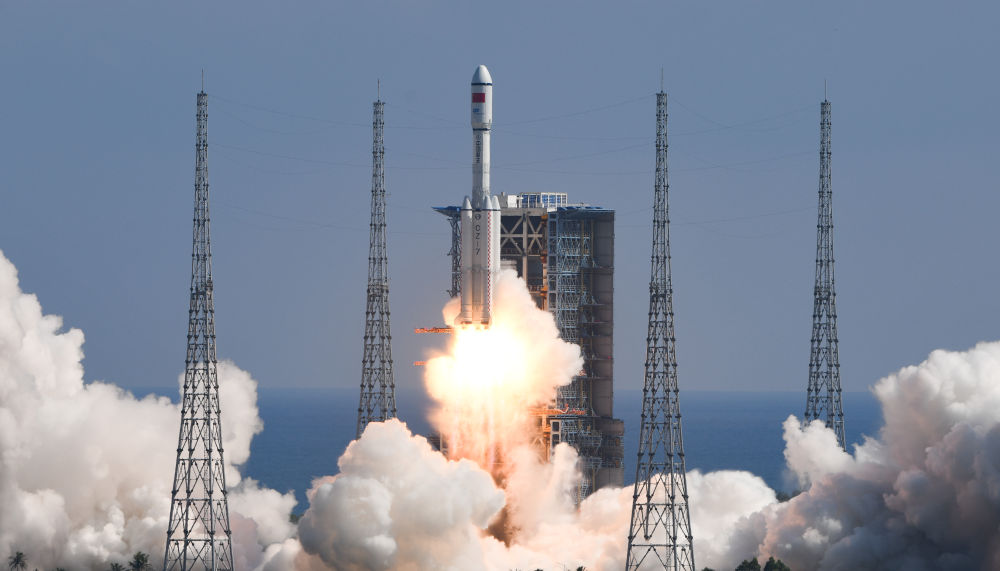 ↑2021年9月20日15时10分,搭载天舟三号货运飞船的长征七号遥四运载火箭,在我国文昌航天发射场点火发射。