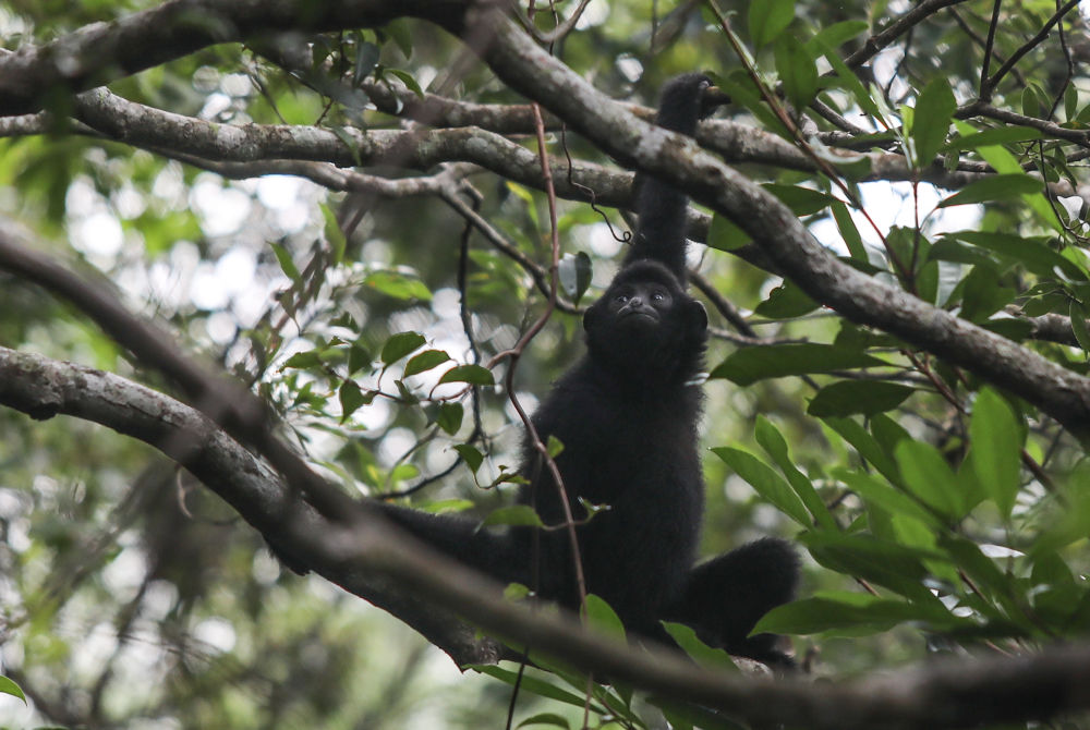 ↑这是在海南霸王岭自然保护区内拍摄的海南长臂猿(2019年10月25日摄)。