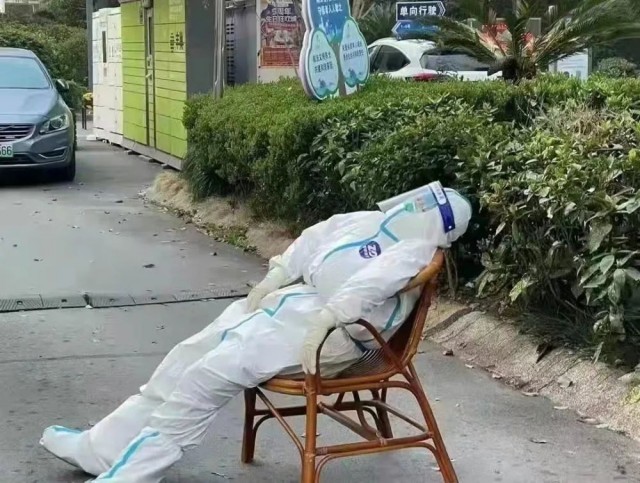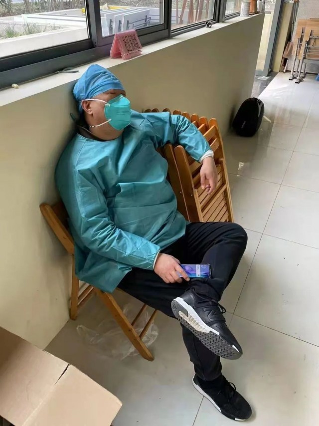 一线的防疫工作人员们常常就地休息