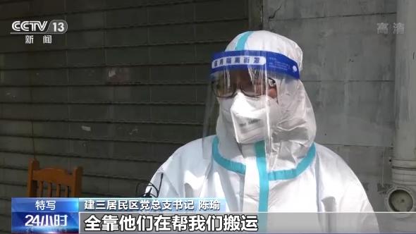 建三居民区党总支书记 陈瑜:有的人是第二天要做血透,一定要上门做核酸韦组长这个团队真的给了我很大支撑,尤其是卸物资,东西来了要发菜,全靠他们在帮我们搬运。