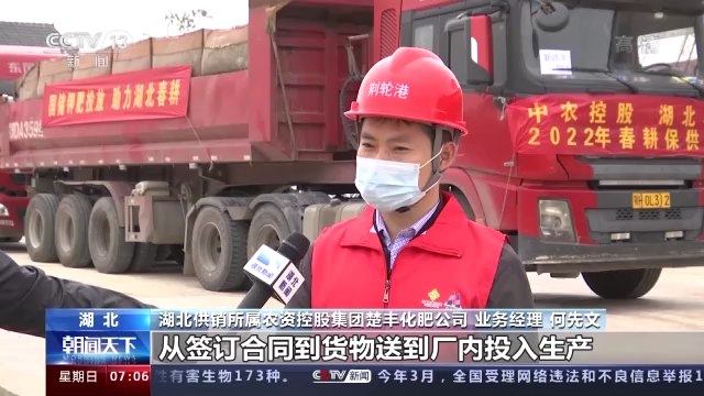 湖北供销所属农资控股集团楚丰化肥公司业务经理 何先文:从签订合同到货物送到厂内投入生产仅用不到15天时间。