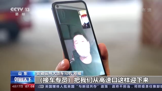 在从高速口到企业卸货的过程中,这位司机全程没有下车。遵守闭环管理的要求,记者采访司机只能通过视频通话来进行。