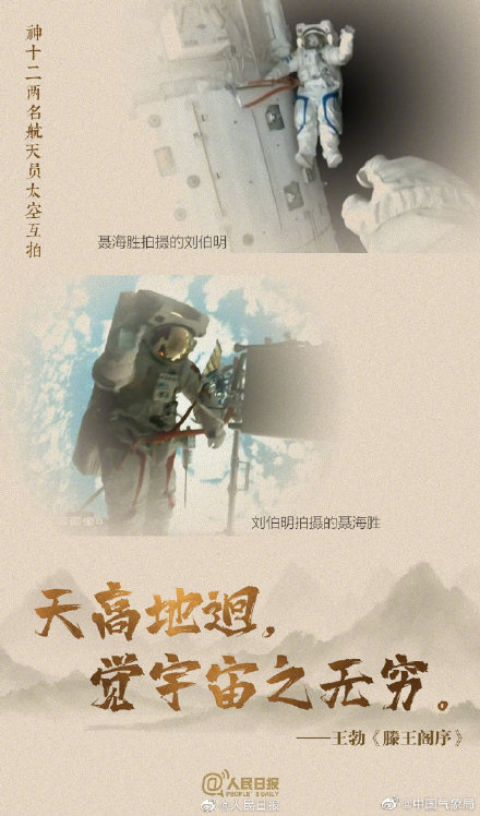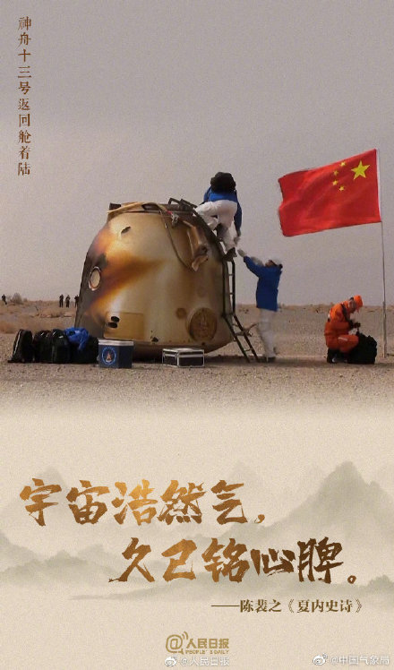 16日,神十三乘组顺利返回地球。古往今来,无数文人墨客写下了对宇宙的浪漫想象,当“宇宙之无穷”映入眼帘,当“手可摘星辰”不再夸张,当“大鹏一日同风起,扶摇而上九万里”成为现实,浩瀚宇宙见证着中国人的浪漫。中国航天就是宇宙级的浪漫!