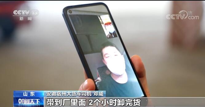 在从高速口到企业卸货的过程中,这位司机全程没有下车,遵守闭环管理的要求,记者采访司机只能通过视频通话来进行。