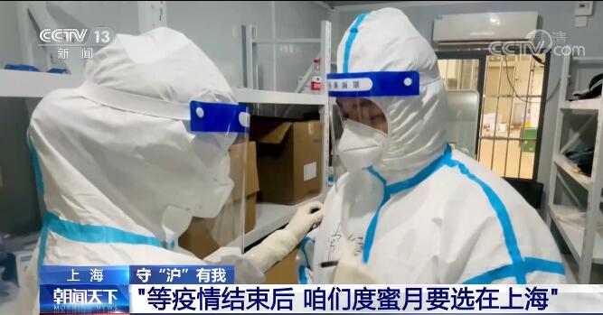 央视网消息:我们来认识一对抗疫“准新人”,他们的防护服上,两个人的名字中间画的都是小爱心。这对“准新人”来到上海驰援抗疫,婚期也因此推迟了。不过,他们说,不要紧,等疫情结束了,度蜜月要选在上海。