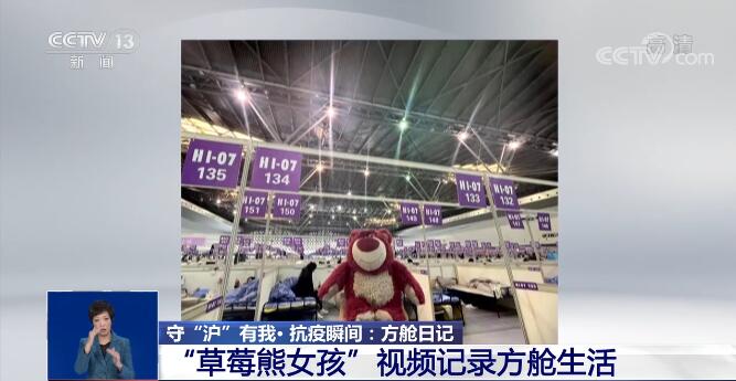我们首先来认识一个“草莓熊女孩”。4月14日,在世博方舱待了15天的凯梨终于回家了,从接到疾控中心的第一个流调电话开始,凯梨就开始用视频记录她这一段特殊的人生经历。因为随身带的小玩偶很抢眼,大家也亲切地称呼她“草莓熊女孩”。活泼乐观的凯梨用细腻、善意、理解的目光记录着方舱内的一切,在她的方舱日记里还有这样一段温暖的记录。在世博展览中心方舱医院,每天中午及傍晚都有一个声音准时响起,我们现在听到的就是专门为方舱中正在接受隔离治疗的感染者们开通的专属电台。他们有一套独立的广播系统,每日发布一些通知、信息,也会播放音乐、相声等舒缓情绪的节目。“草莓熊女孩”凯梨说,每次一放音乐就忍不住跟着哼唱起来。