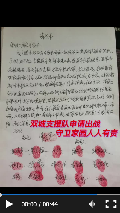 “为人民筑起一道生命的防线,疫情不除,我们不退。”这是双城区各医疗单位组成的援助核酸采集队写下的请战书里的一句话。一枚枚红手印,齐刷刷地摁在了白纸黑字的请战书上,鲜红的手印分外夺目。