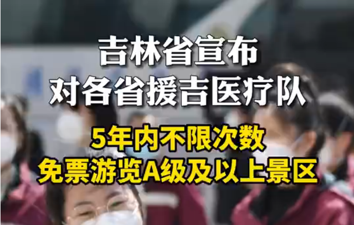 【驰援吉林医疗队可免票到吉旅游】吉林省宣布:各省份援吉医疗队队员,可携4位家属,5年内不限次数免门票游览吉林省A级及以上旅游景区!