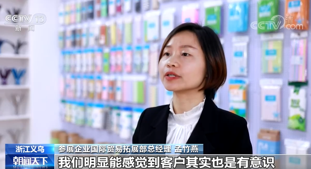 参展企业国际贸易拓展部总经理 孟竹燕:环境友好型产品,是我们重点推出的新产品。我们明显能感觉到客户其实也是有意识慢慢接受线上的展会形式。