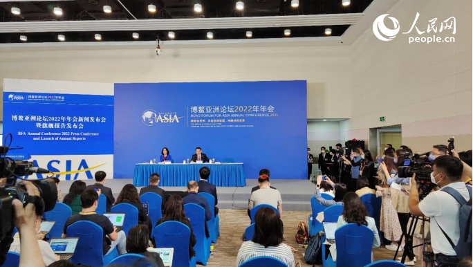 博鳌亚洲论坛2022年年会首场新闻发布会现场。人民网记者 许维娜摄