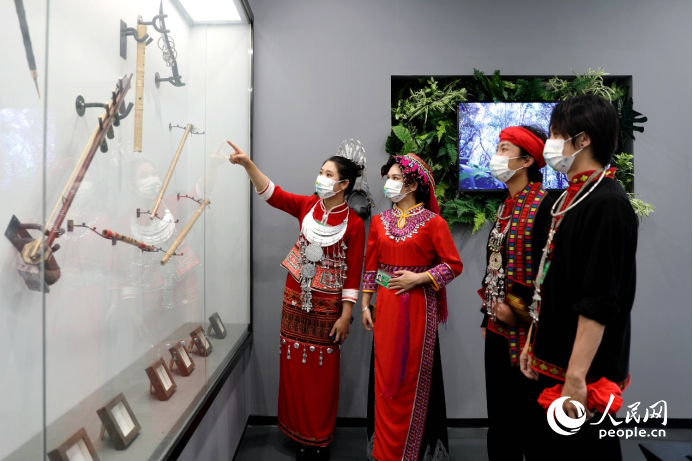 展会现场,展出少数民族乐器。人民网 符武平摄