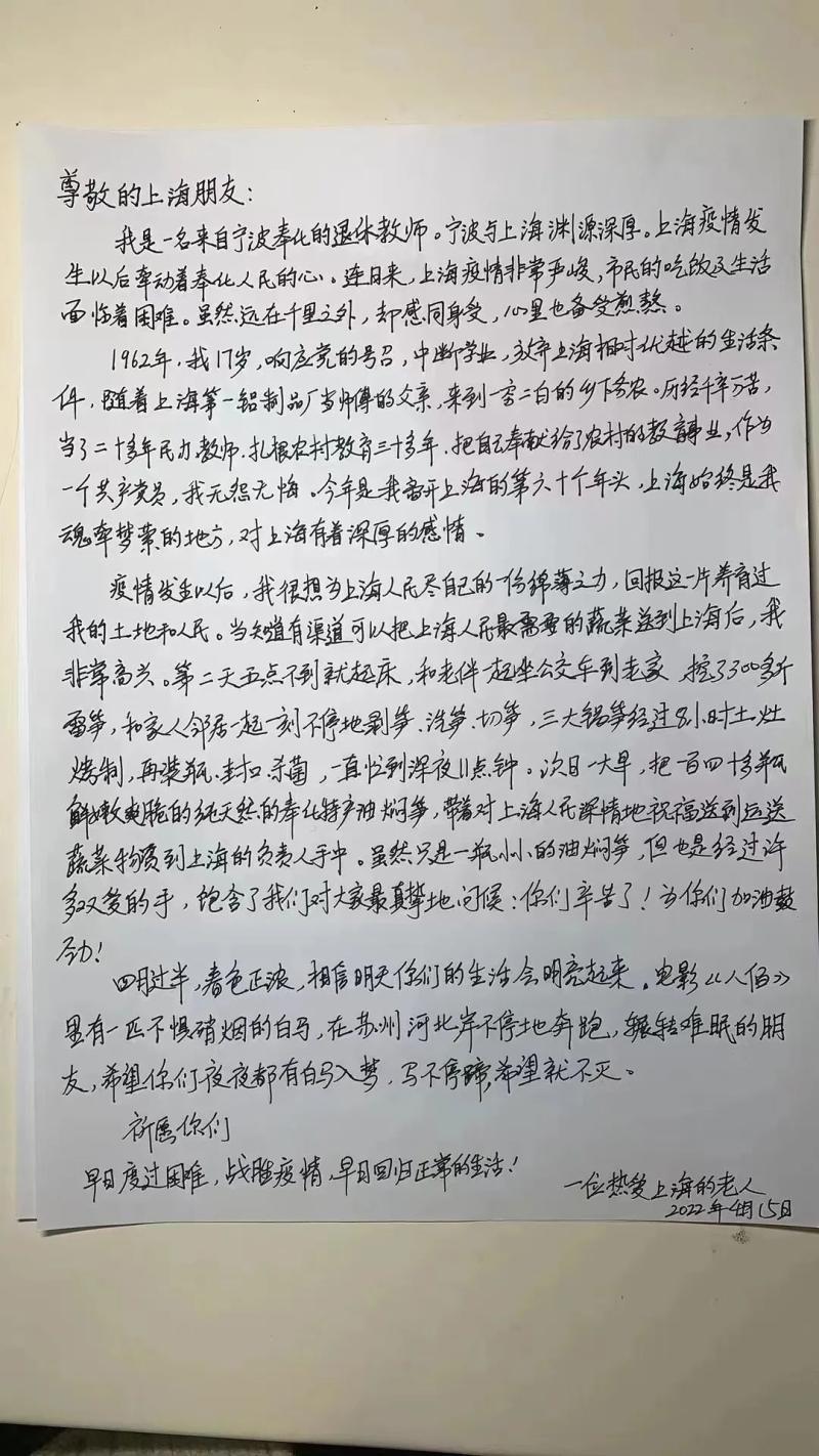 一位老人给上海人民的手写信刷屏