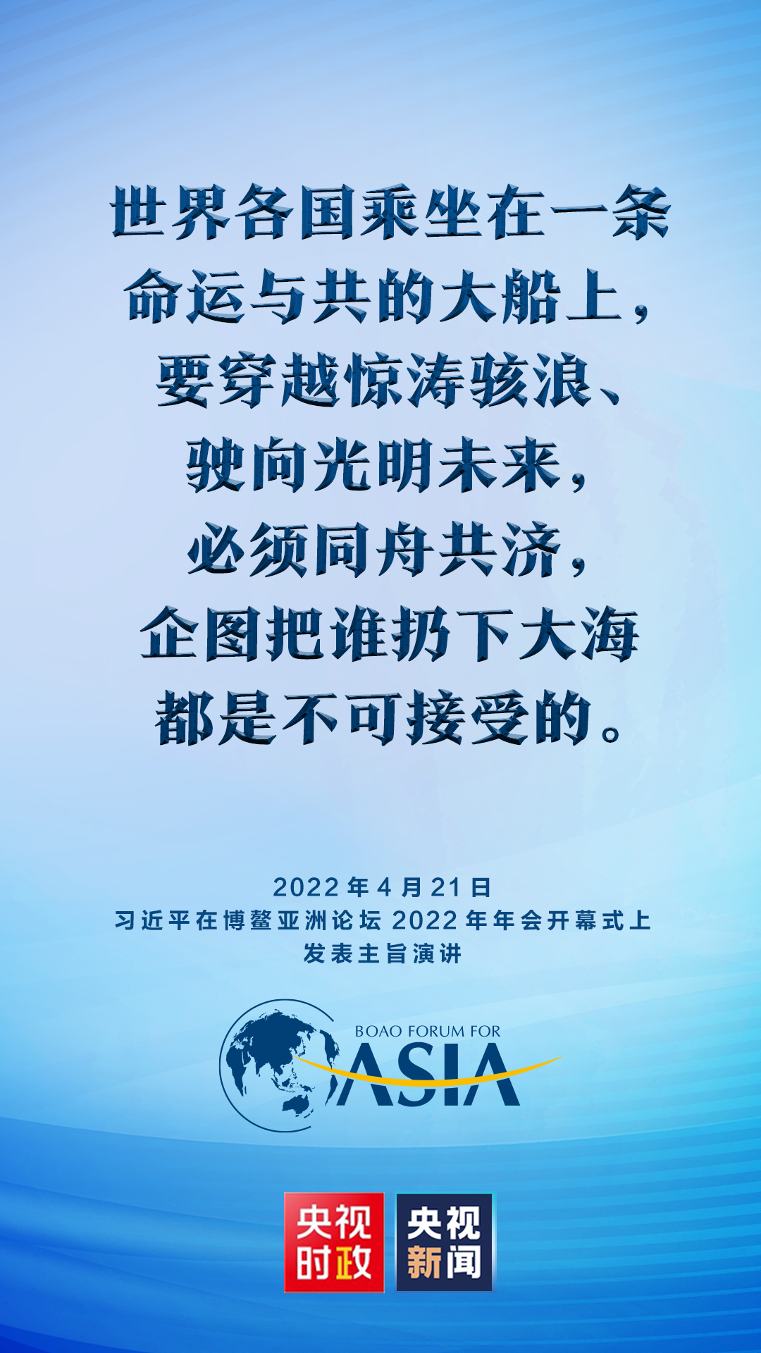博鳌亚洲论坛2022年年会开幕式21日上午在海南博鳌举行,国家主席习近平以视频方式发表题为《携手迎接挑战,合作开创未来》的主旨演讲。
