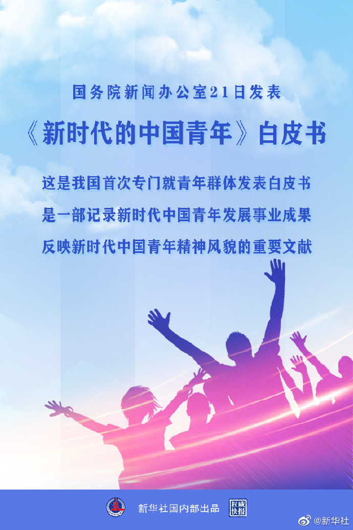 国务院新闻办公室4月21日发表《新时代的中国青年》白皮书。这是我国首次专门就青年群体发表白皮书。白皮书全面介绍了新时代党和政府为青年发展创造的良好条件、取得的巨大成就,充分展现了新时代中国青年奋进新征程、建功新时代的青春担当,是一部记录新时代中国青年发展事业成果、反映新时代中国青年精神风貌的重要文献。(记者黄玥、董博婷、张研,海报设计乔昕)