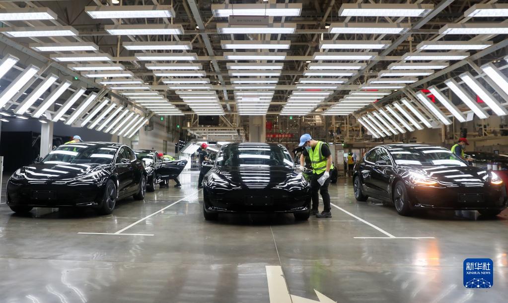 工作人员在特斯拉上海超级工厂内作业(2020年11月20日摄)。新华社记者 丁汀 摄