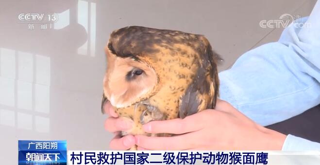 央视网消息:近日,广西阳朔县普益乡留公村两位村民晚上在村口道路旁发现了一只类似猫头鹰的鸟,当时这只鸟身体虚弱无法飞行,村民随即联系了阳朔县林业部门。经林业部门工作人员鉴定,这只鸟是国家二级保护动物猴面鹰,它的身体虽无明显外伤,但是精神状态不佳。随后,林业部门工作人员将这只猴面鹰移交到桂林市野生动物保护站进行养护观察。