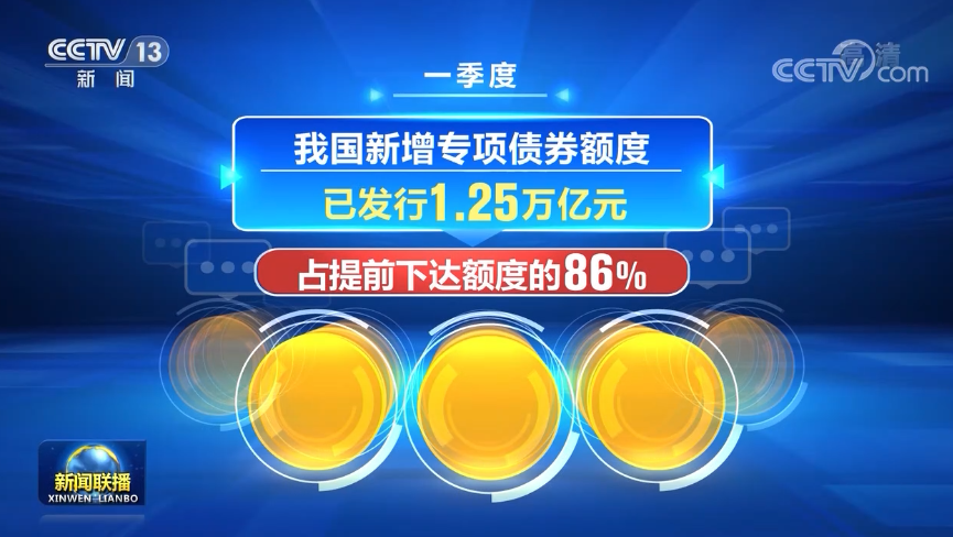 作为稳投资的重要政策工具,一季度,我国新增专项债券额度已发行1.25万亿元,占提前下达额度的86%,政策靠前发力,保证了投资运行总体平稳。