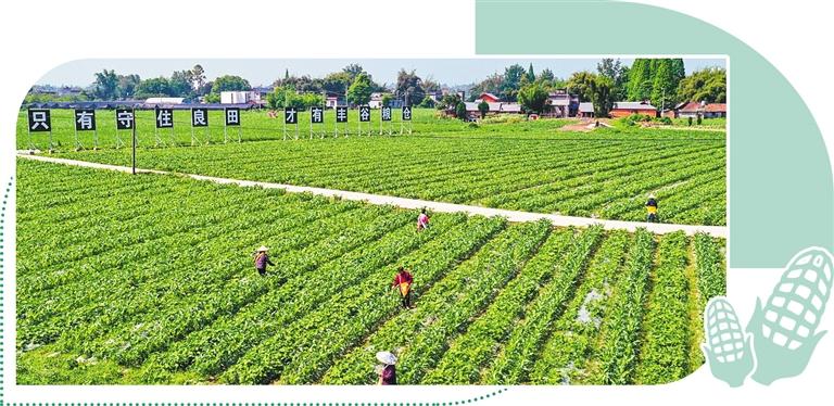 近日,在四川省眉山市青神县青竹街道季时坝村,村民在给玉米和大豆施肥。新华社记者 王 曦摄