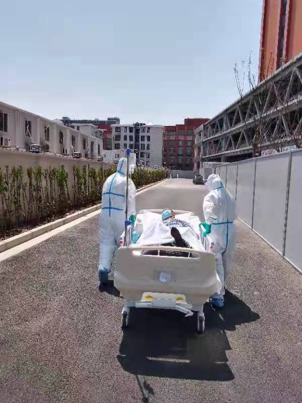 这里是位于闵行区的复旦大学附属中山医院临时执业点,本是新建的上海市老年医学中心,计划5月对外开放。一场疫情打乱节奏,3月1日被紧急征用为新冠肺炎后备定点医院,3月11日正式启用。随着老年感染者逐渐增加,中心“负重”而行,承担了众多老年、重症病人的救治。