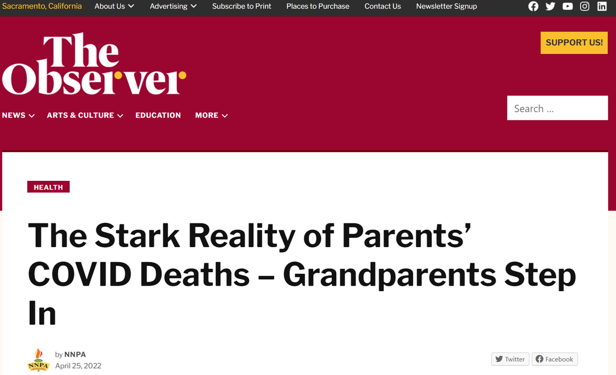中国日报网5月1日电 据美国《萨克拉门托观察家报》(The Sacramento Observer)网站报道,近日新发布的报告显示,美国有20万儿童因新冠疫情失去父母。当年幼的孤儿面临如此不幸的悲剧时,许多年迈的祖父母不得不承担起主要看护者的角色。而这些“新冠孤儿”中,有色人种儿童的占比更高。