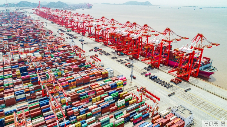 ▲上海洋山四期自动化码头有序运行。 本报记者 张伊辰摄