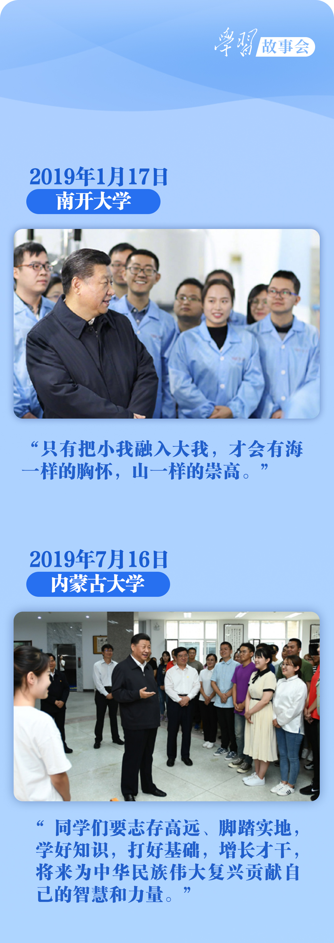 “现在你们要好好学习,心无旁骛……在什么时间就要做什么事情,做什么事情都要脚踏实地。”