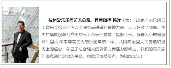 疫情当前,媒体人和音乐人同心同向同行,从策划到邀约,从录制到播出,只有短短不到两周的时间,各乐团的演奏家和节目组齐心协力,克服录制困难,不断创新编排形式,最终实现全国20家交响乐团汇聚云端,绽放华章。